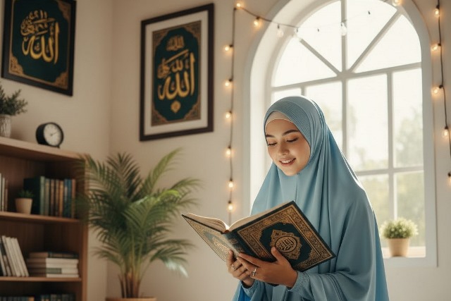Ilustrasi Membaca Al-Qur'an. (Foto: Ilustrated by Gemini AI/UNIKMA)