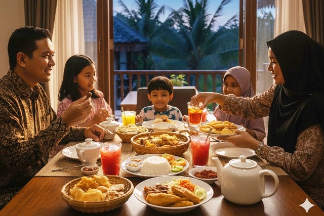 Ilustrasi buka puasa, puasa Senin, Puasa Sunnah, Puasa Ayyamul Bidh. (Foto: Gemini/Unikma.ac.id)