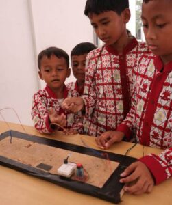 Di lab robotika, siswa diberikan kesempatan untuk mencoba berbagai simulasi permainan edukatif yang mengasah kemampuan berpikir logis dan kreatif. “Di lab ini mereka melakukan simulasi dan uji coba permainan robotik yang interaktif, suatu pengalaman yang sangat berharga bagi anak-anak untuk mengenal teknologi modern sejak dini,” tambah Eko.