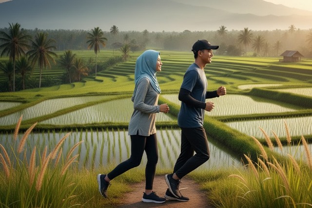 Ilustrasi olahraga, lari pagi, hidup sehat. (Foto: Gemini ai/Unikma.ac.id)