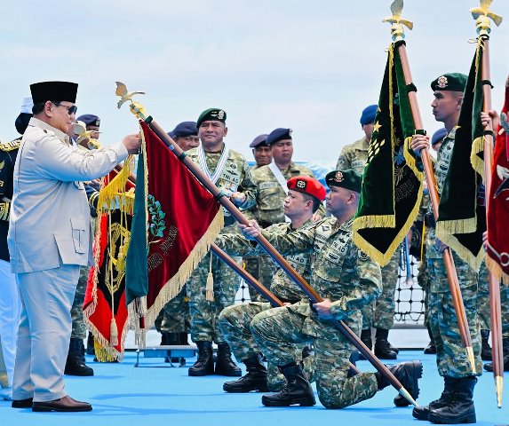 UNIKMA, Cilacap – Seragam baru Tentara Nasional Indonesia (TNI) menjadi sorotan dalam Parade Kapal Perang yang digelar di perairan Teluk Jakarta pada Rabu (2/10/2025). Panglima TNI Jenderal Agus Subiyanto hingga Letkol Teddy terlihat mengenakan seragam dinas lapangan (PDL) terbaru tersebut. Momen penggunaan seragam baru ini menjadi perhatian karena menandai perubahan signifikan dalam tampilan prajurit TNI di lapangan.