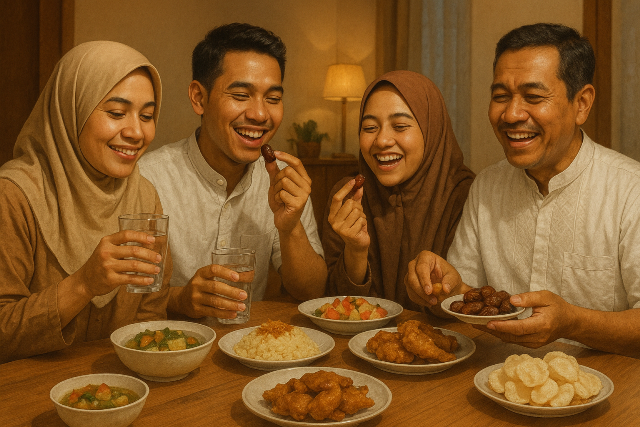 Ilustrasi Buka Puasa, Ramadhan, Qadha Puasa Ramadhan. (Foto: Ilustrated by ai.stmikkomputama.ac.id/Ridlo/Universitas Komputama)