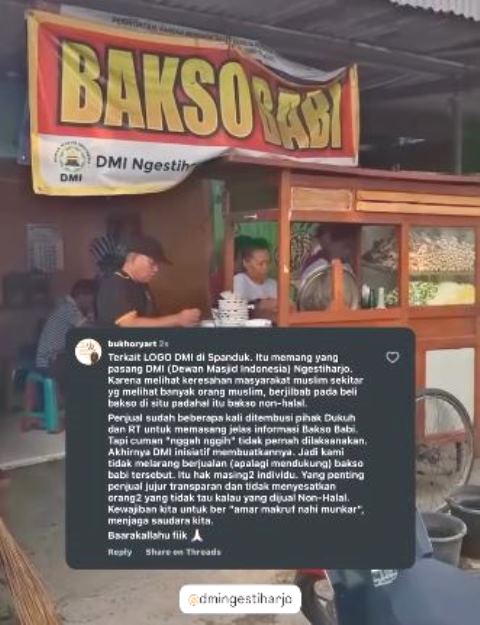 “Jadi kami tidak melarang berjualan (apalagi mendukung) bakso babi tersebut. Itu hak masing-masing individu. Yang penting penjual jujur transparan dan tidak menyesatkan orang-orang yang tidak tahu kalau yang dijual non-halal,” demikian dikutip dari @dmingestirejo, Senin (27/10/2025).
